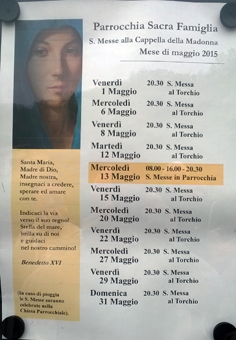 Progamma delle funzioni alla Cappelletta mese di maggio 2024