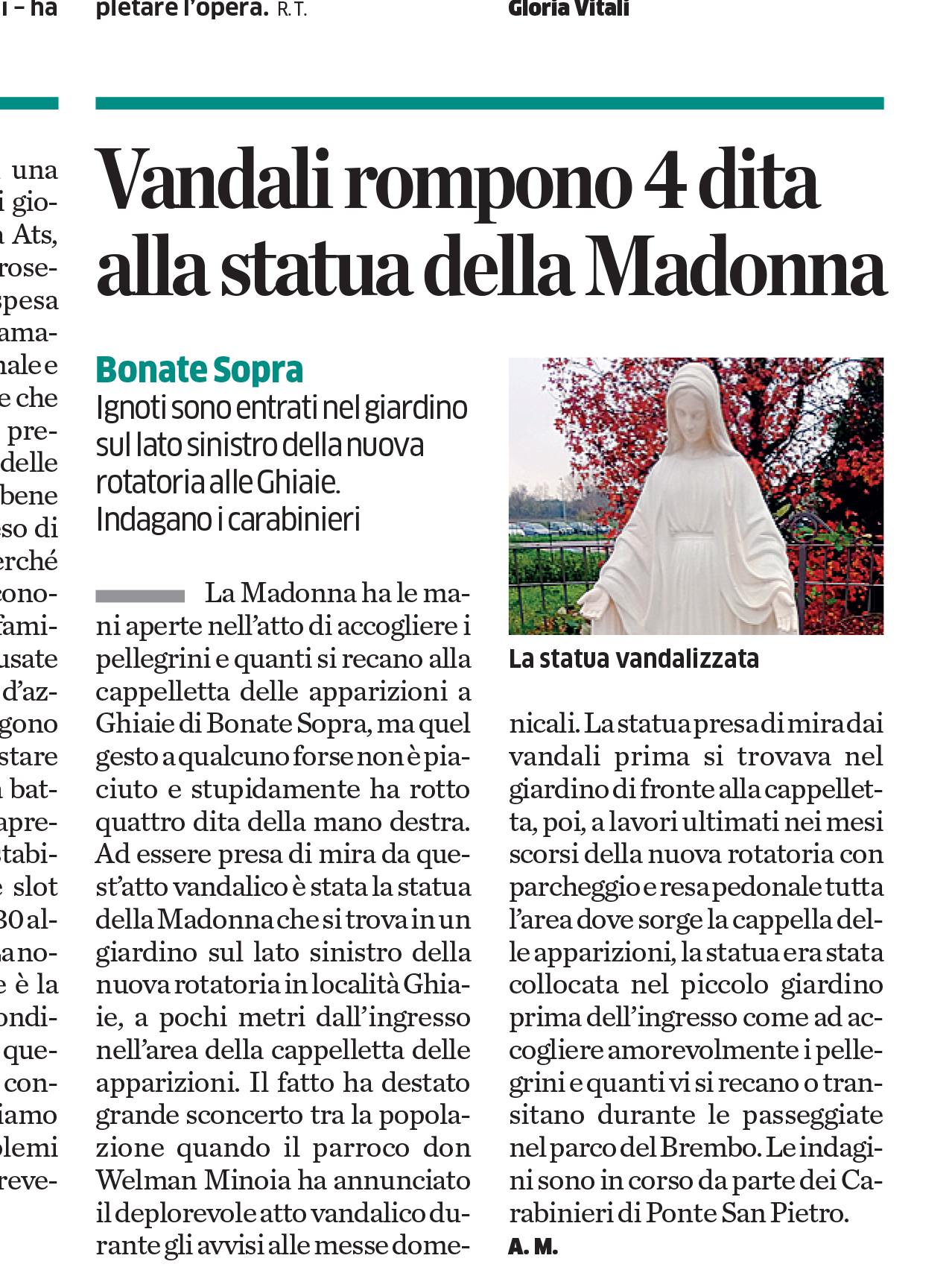 Un comunicato della Ven, Curia sui fatti delle Ghiaie di Bonate
