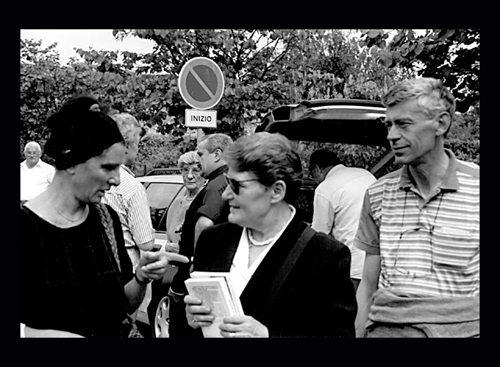 736 Adelaide parla con una devota vicino alla Cappella, nel 2000 |