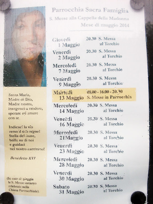 Progamma delle funzioni alla Cappelletta mese di maggio 2024